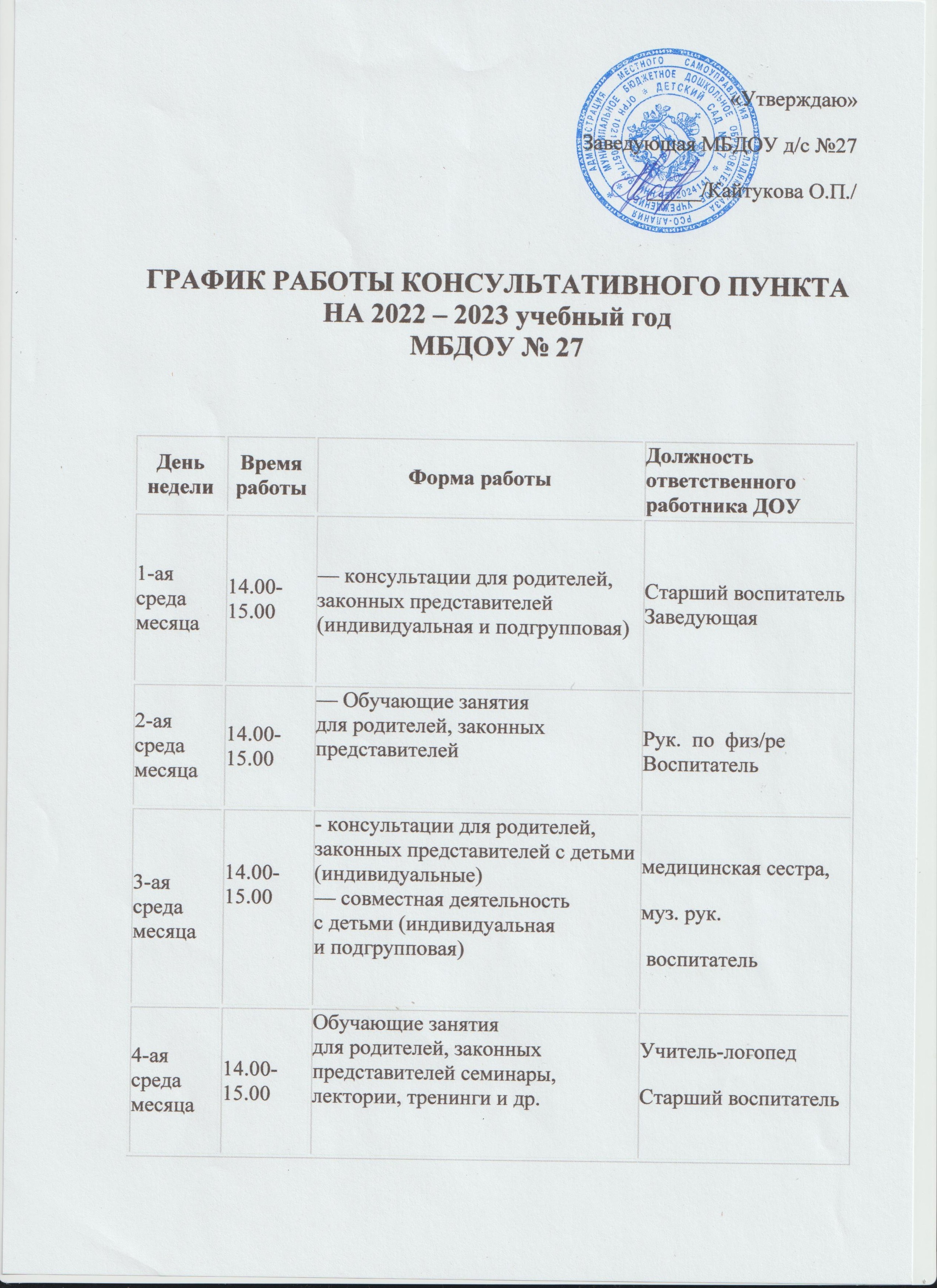 - График работы консультационного пункта